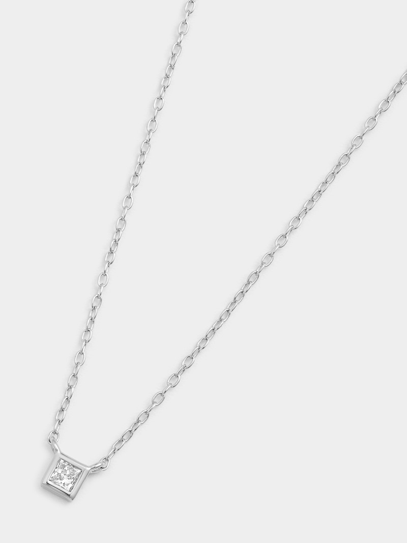 Expertly crafted in Sterling Silver, this beautiful necklet features a princess-cut Lab Grown Diamond solitaire in a bezel setting. The total Diamond weight is 0.12 carats.