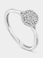 Expertly crafted in Sterling Silver, this alluring ring features a round cluster of single-cut Lab Grown Diamonds and an elegantly twisted band. The total Diamond weight is 0.16 carats.
