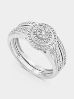 Expertly crafted in Sterling Silver, this beautiful twinset ring features a cluster of brilliant-cut and single-cut Lab Grown Diamonds in a double halo setting and elegantly twisted bands enhanced by intricate beading. The total Diamond weight is 0.082 carats.