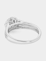 Expertly crafted in Sterling Silver, this beautiful ring features a round cluster of single-cut Lab Grown Diamonds in a halo setting and a triple split-shank band enhanced by intricate beading. The total Diamond weight is 0.08ct.
