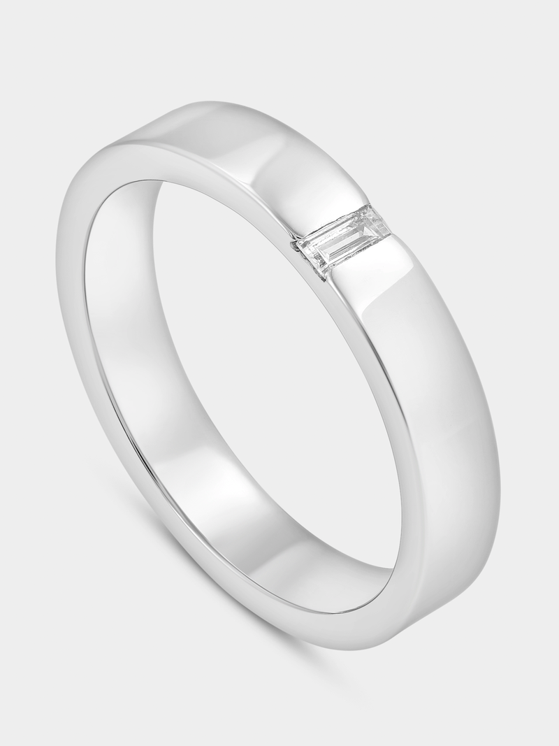 Expertly crafted in Sterling Silver, this elegant ring features a skinny baguette-cut Lab Grown Diamond in a flush setting.