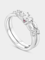 Expertly crafted in Sterling Silver, this beautiful twin set ring features a round-cut Moissanite centre stone and bands glittering with marquise-cut and round-cut stones.