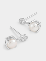 Expertly crafted in Sterling Silver, these beautiful drop earrings feature lustrous Pearl and glitter with pavé set Cubic Zirconia.