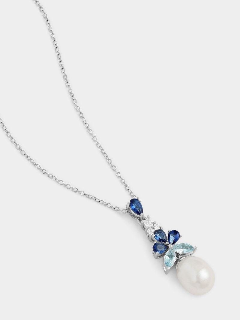 Expertly crafted in Sterling Silver, this beautiful pendant on a chain features a lustrous Shell Pearl accented by marquise-cut blue Cubic Zirconia.