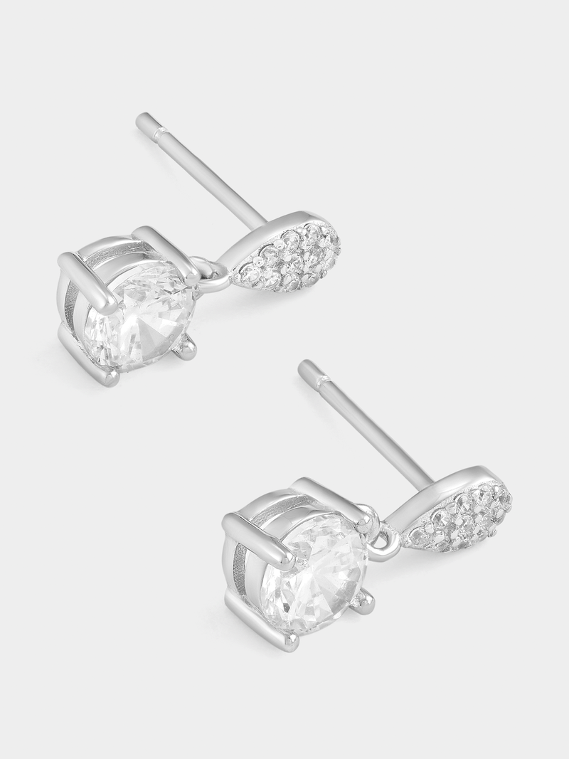 Expertly crafted in Sterling Silver, these beautiful drop earrings feature round-cut white Cubic Zirconia and glitter with pavé set stones.