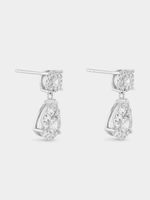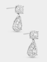 Expertly crafted in Sterling Silver, these elegant drop earrings feature round and pear-shaped clusters of round-cut Created White Sapphires and Earth Grown Diamond accents.