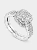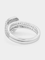 Expertly crafted in Sterling Silver, this magnificent twinset ring features a rectangle cluster of round-cut Earth Grown Diamonds and Created White Sapphires in a double halo setting and a split-shank band sparkling with pavé set stones.