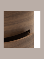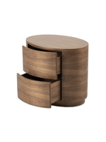 The Stockholm Pedestal brings a contemporary touch to your bedroom or living space, drawing inspiration from Scandinavian design. The rich walnut veneer, with its stunning grain details, adds warmth and an organic sophistication to your room. Its unique oval shape, complemented by smooth push-to-open drawers, provides discreet storage for bedside essentials or everyday items, providing style and functionality.