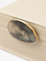 Beautiful and practical, bring thoughtful details to your space with our Stone Clasp Decorative Box. Faceted edges and a stone clasp bring a luxe feel to the piece. Use it to store small items and precious objects, or use it as a decorative accent on a shelf, side table, or console.