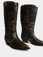 Update your winter style with our Studded Knee High Western Boots. Wear them with a denim dress or midi skirt and denim shirt.