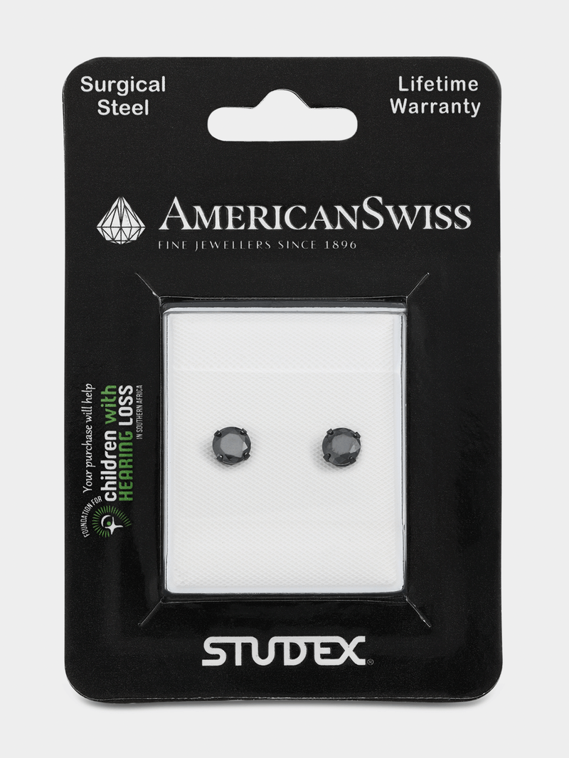 Expertly crafted in Stainless Steel, these stylish 5mm stud earrings feature round-cut black Cubic Zirconia. Made from sterilised, nickel-safe, hypoallergenic materials, they’re perfect for piercing and sensitive ears