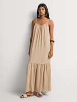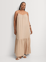 Made from soft, flowy fabric, our Strappy Drop Tiered Sundress is a versatile addition to your wardrobe. Wear this maxi with buckled slides or embellished sandals, on its own or layered under lightweight jackets and blazers