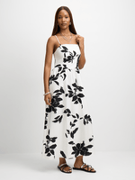 Get ready for Summer with our chic white and black sundress. Made from a rayon blend fabric, this dress features a flattering silhouette and adjustable straps for a perfect fit. Perfect for sunny days paired with sandals or a night out in heels.