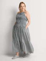 Made from lightweight and breathable cotton, our Gingham Halterneck Drop Tier Maxi Dress is a stylish choice for summer. Wear it with flat sandals and complete the look with a woven handbag.