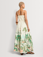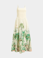 Our Jungle Print Smocked Bodice Maxi Sundress is a statement piece for warm days and nights. Made from lightweight and breathable cotton, the fitted top is flattering, while the flared skirt with a bold jungle print is unique and stylish. Dress it up with barely there strappy heels for a dinner date, or with casual flats on the weekend.