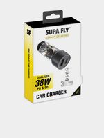 Charge on the go with our Supa Fly Circuit Series 38W Car Charger. Dual ports for double the power. Sleek design adds style to functionality. Keep your devices powered up wherever you go. Ideal for staying connected on road trips or daily commutes.