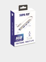 Meet the Supa Fly USB 4 Port Hub, the ultimate accessory for convenience and connectivity. This sleek silver hub boasts four ports for all your devices. With a null brand and a user-friendly design, this hub is perfect for your tech needs.