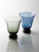 Update your glassware with the Sur La Table Flared Footed Glass in Blue. This 320ml glass is perfect for serving anything from water to whiskey or other spirits and mixers. The coloured glass with a subtly flared shape, ribbed finish and rounded foot feels both contemporary and vintage-inspired.