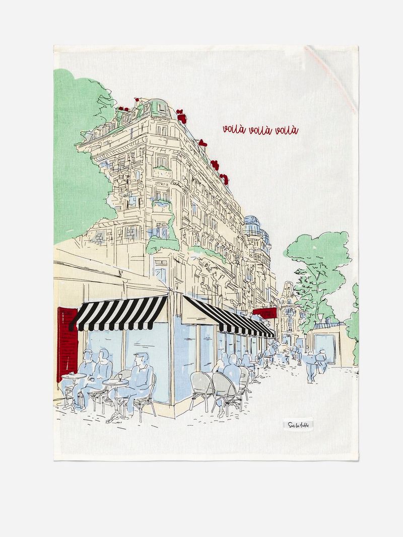 Bring quirky French flair to your kitchen with the Sur La Table Voila Tea Towel. Made from absorbent cotton with a single print design, it combines functionality and style for a neat, elegant addition to your cooking space.