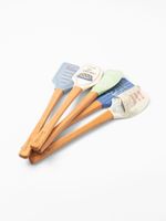 Bring French flair to your baking with a playful Sur La Table Spatula. With a flexible silicone top that's perfect for mixing, scraping and cleaning without damaging surfaces or cookware, the fun print turns simple baking moments into a little celebration of French style. The durable rubber wood handle is engraved with the Sur Le Table logo and fits comfortably into your hand.