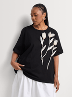 Our Flower Applique Oversized T-Shirt is an elevated take on a classic tee. Made from soft and breathable cotton in a relaxed, oversized fit, it features a 3D floral detail that adds interest and texture. Wear it with denim, soft wide-leg pants or smart trousers.