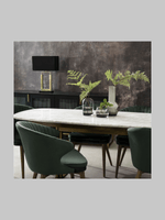 Light up your bedside or reading corner with this elegant lamp. The brushed metal and marble base detailing is perfectly paired with a black fabric shade.