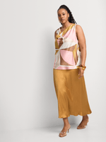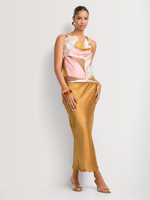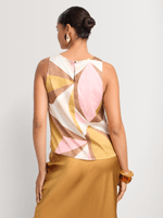Printed satin sets are trending this season. Pair our Printed Satin Cowlneck Tank Top with the matching bottom for a co-ord look, or wear it with denim and heels for a night out.