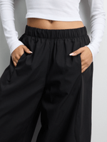Elevate your style with our versatile black taslon pull-on barrel pants. Cut for a relaxed fit, these pants feature a comfortable elastic waistband. Crafted from high-quality polyester, they offer durability. Perfect for all-day wear, these pants will quickly become a wardrobe favorite.