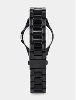 This stylish Crystal-embellished Black Plated bracelet watch features a round case and black fashion multifunction dial.