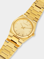 This stylish Gold Plated bracelet watch features a round case and sleek champagne dial.