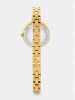 This stylish Gold Plated skinny bracelet watch features a round case and sleek silver toned dial.