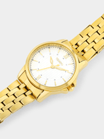 This stylish Gold Plated bracelet watch features round case and silver toned dial.
