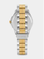 This stylish two-toned watch features a Silver Plated round case, silver fashion multifunction dial and Gold and Silver Plated bracelet strap.