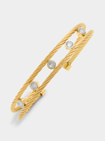 Expertly crafted in Gold Plated Stainless Steel, this stylish cable cuff bangle catches the light with round-cut Cubic Zirconia. All Tempo Jewellery is hypoallergenic, waterproof and durable, boasting a 1-year guarantee.