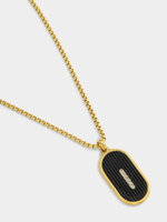 Expertly crafted in Gold Plated Stainless Steel, this stylish dog tag pendant on a 55cm curb box catches features a channel of pavé set Cubic Zirconia enhanced by black enamel. All Tempo Jewellery is hypoallergenic, waterproof and durable, boasting a 1-year guarantee.