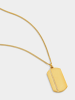 Expertly crafted in Gold Plated Stainless Steel, this stylish dog tag pendant on a 55cm curb chain catches the light with a row of pavé set Cubic Zirconia. All Tempo Jewellery is hypoallergenic, waterproof and durable, boasting a 1-year guarantee.