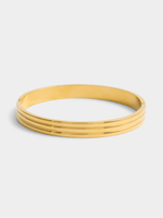 Expertly crafted in Gold Plated Stainless Steel, this stylish grooved bangle catches the light with pavé set Cubic Zirconia. All Tempo Jewellery is hypoallergenic, waterproof and durable, boasting a 1-year guarantee.