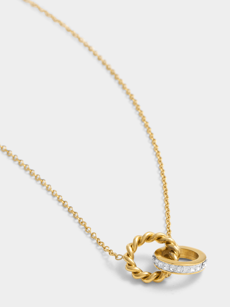 Expertly crafted in Gold Plated Stainless Steel, this stylish 45cm twisted circle necklet glitters with pavé set Cubic Zirconia. All Tempo Jewellery is hypoallergenic, waterproof and durable, boasting a 1-year guarantee.