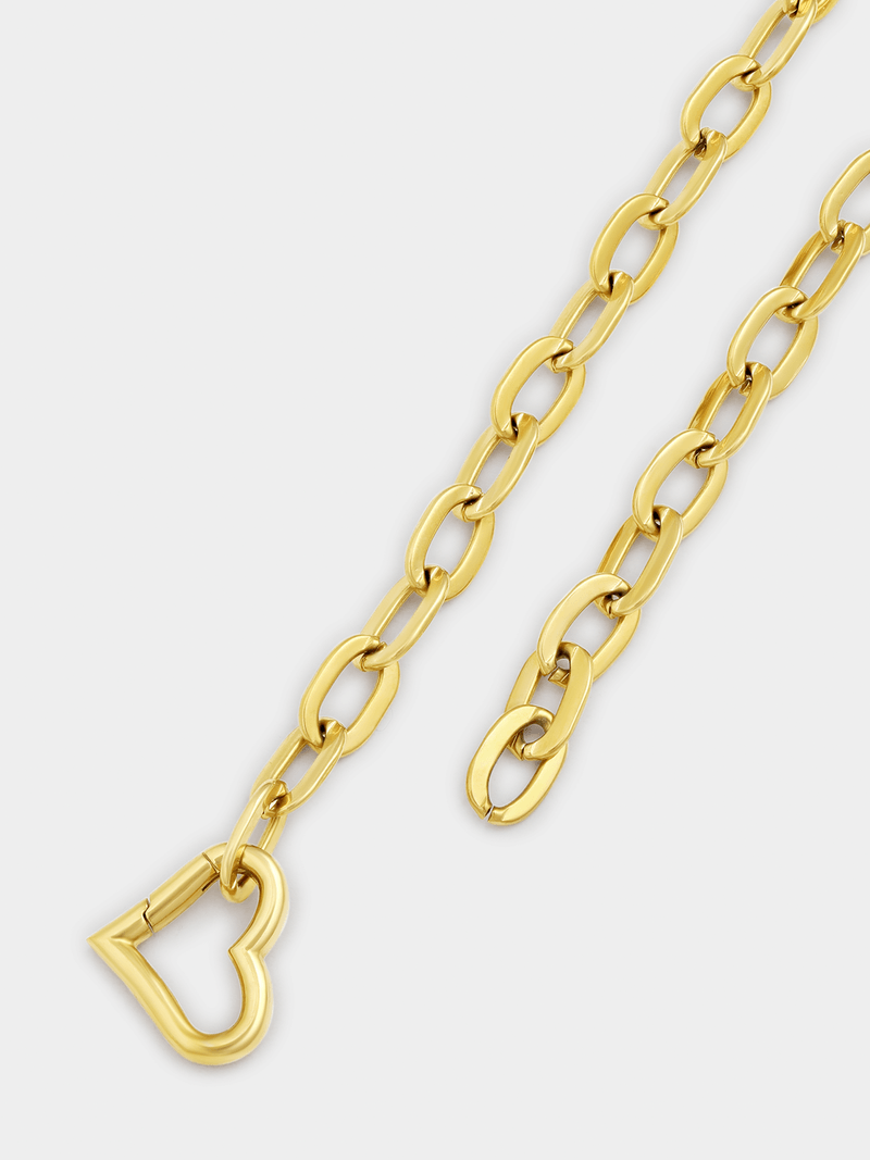 Expertly crafted in Gold Plated Stainless Steel, this 45cm anchor chain features a romantic heart clasp.
