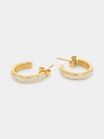 Expertly crafted in Gold Plated Stainless Steel, these dainty half hoop earrings catch the light with channel set Cubic Zirconia. They’re waterproof, anti-tarnish and boast a 1-year guarantee.