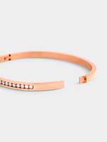 Expertly crafted in Rose Plated Stainless Steel, this stylish hinged bangle features a glittering channel of pavé set Cubic Zirconia. All Tempo Jewellery is hypoallergenic, waterproof and durable, boasting a 1-year guarantee.
