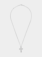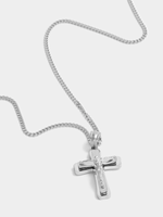 This tiered crucifix pendant on a 55cm box chain is expertly crafted in Silver Plated Stainless Steel. All Tempo Jewellery is hypoallergenic, waterproof and durable, boasting a 1-year guarantee.