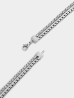 This double layered 55cm wheat and box chain is expertly crafted in Stainless Steel. All Tempo Jewellery is hypoallergenic, waterproof and durable, boasting a 1-year guarantee.