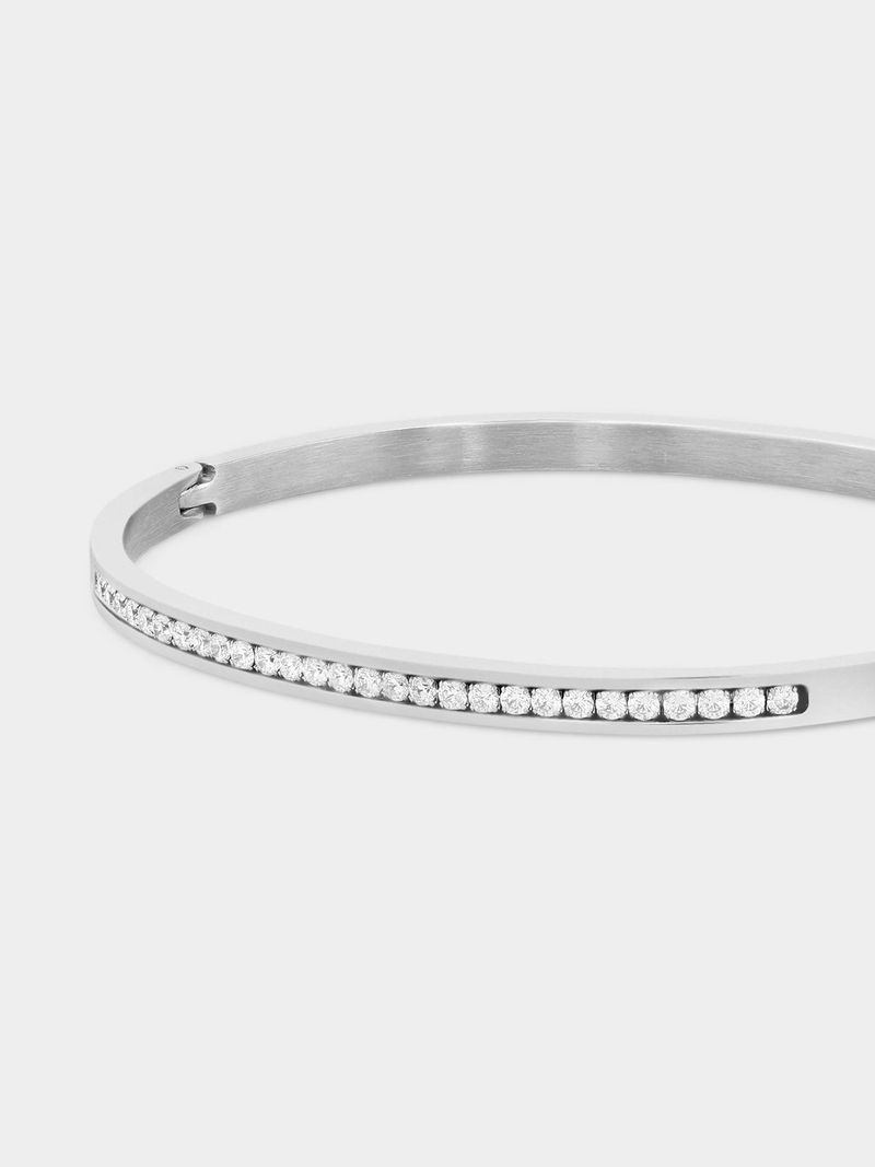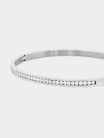 Expertly crafted in Stainless Steel, this beautiful hinged bangle catches the light with channel set Cubic Zirconia. It’s waterproof, anti-tarnish and boasts a 1-year guarantee.
