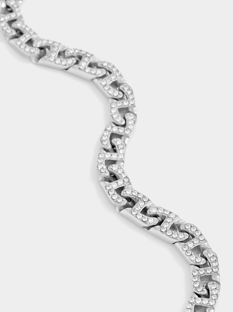 Expertly crafted in Stainless Steel, this bold 21cm L-link bracelet catches the light with pavé set Cubic Zirconia. All Tempo Jewellery is hypoallergenic, waterproof and durable, boasting a 1-year guarantee.
