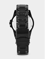 This stylish watch features a Black Plated Stainless Steel round case, black multi function fashion dial and Black Plated bracelet strap.