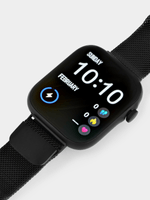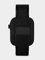 Monitor your fitness while enhancing your daily life with this Black Plated splash-resistant smart watch featuring a square case, digital touch screen and stylish mesh strap plus an additional black silicone strap. Special features include a pedometer, heart rate monitor, blood pressure and blood oxygen measurer, sleep tracking, multisport modes, Bluetooth calling, missed call and message notification plus a 3-day battery life.