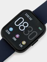 Monitor your fitness while enhancing your daily life with this splash-resistant smart watch featuring a square Black Plated metal alloy case, digital touch screen and durable blue hypoallergenic silicone strap. Special features include a pedometer, heart rate monitor, calorie tracker, multisport modes, missed call and message notification plus a 3-day battery life.