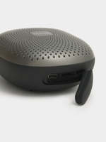 Take your soundtrack with you! This sleek, charcoal splash-resistant clip-on mini speaker connects your phone via Bluetooth and delivers up to 7 hours of playtime making it ideal for listening on-the-go.