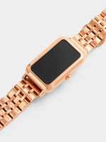Monitor your fitness while enhancing your daily life with this splash-resistant smart watch featuring a Rose Plated rectangle case, AMOLED touch display and elegant bracelet strap.